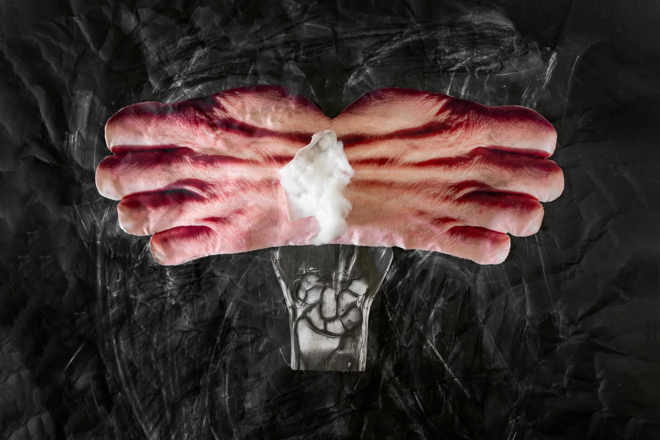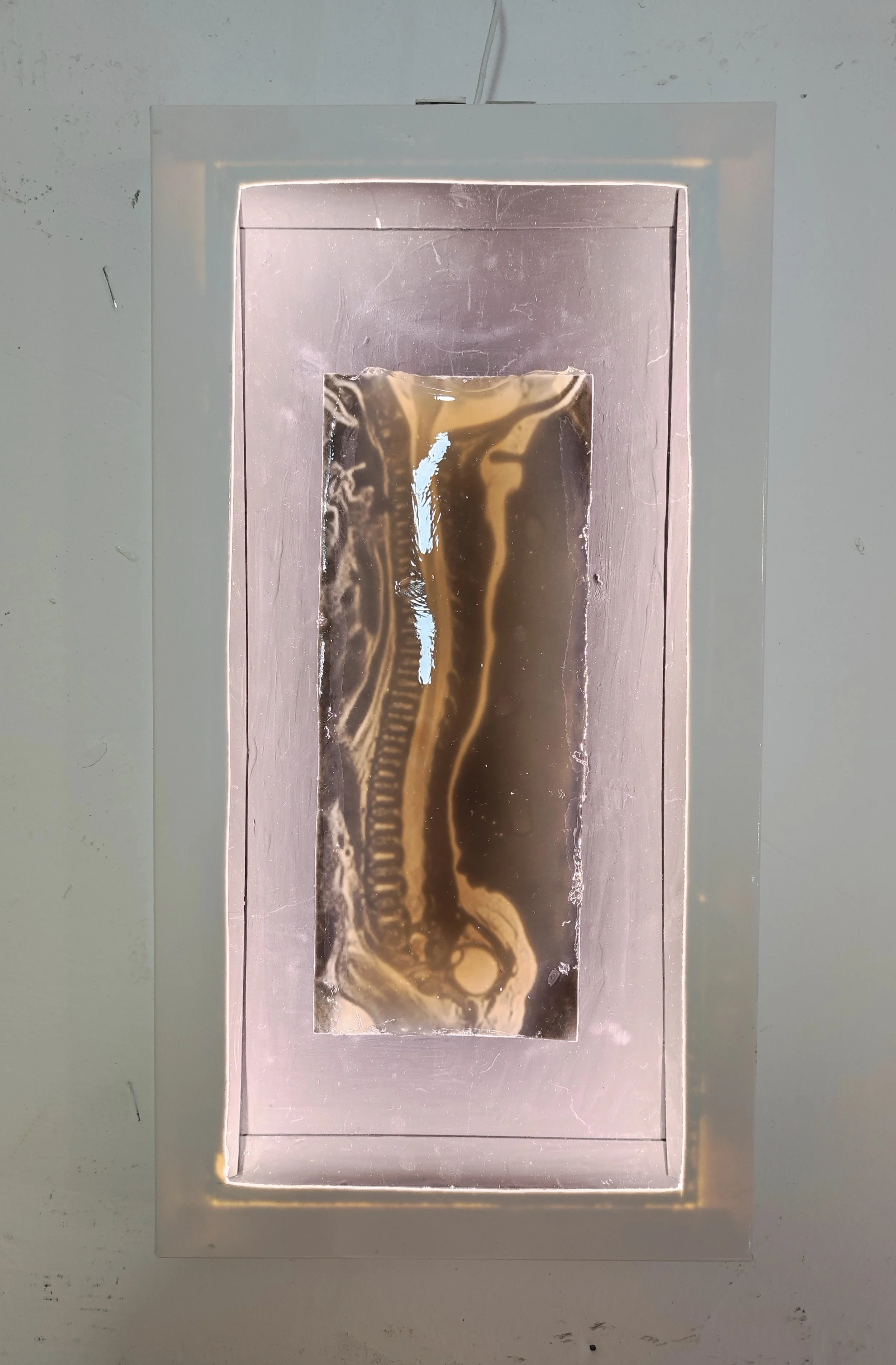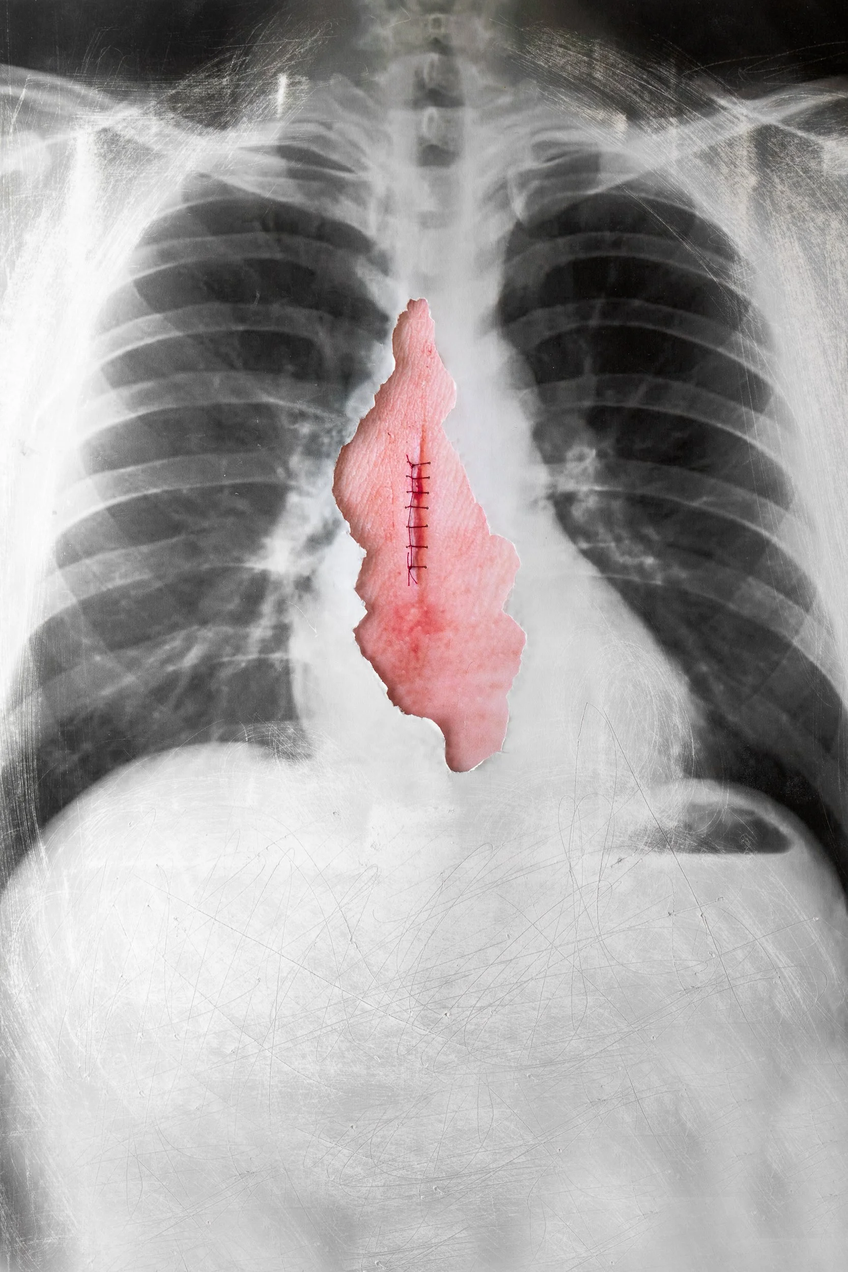 The relationship between the visible and the invisible. The first, “The visible look”, is external and examinate the contentless shell. The second, “The inner look”, sees the body without the external shell exposed and vulnerable.